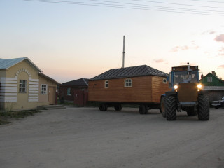 В 2006 г. было принято решение построить передвижной храм на колесах. Эта идея всеобщими стараниями скоро нашла свое воплощение в деле. За основу была взята платформа от передвижной военной бытовки, к которой был приварен железный каркас, впоследствии обшитый досками.